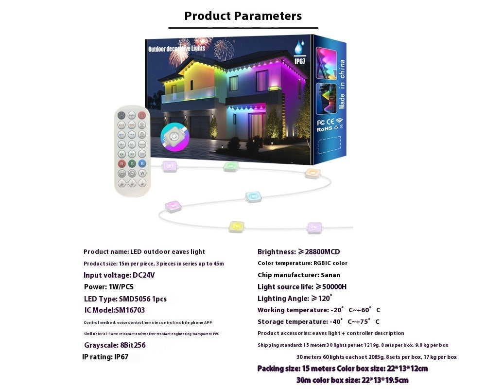 String light * 1 remote control * 1 adapter * 1 buckle * 1 eave light * 1 set