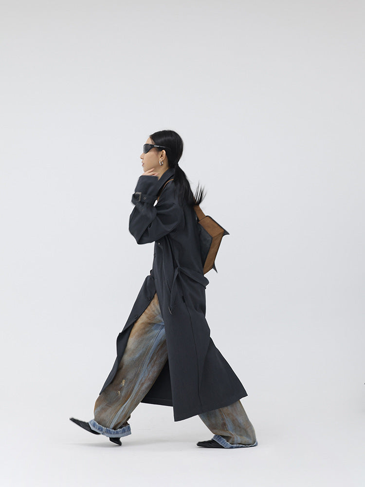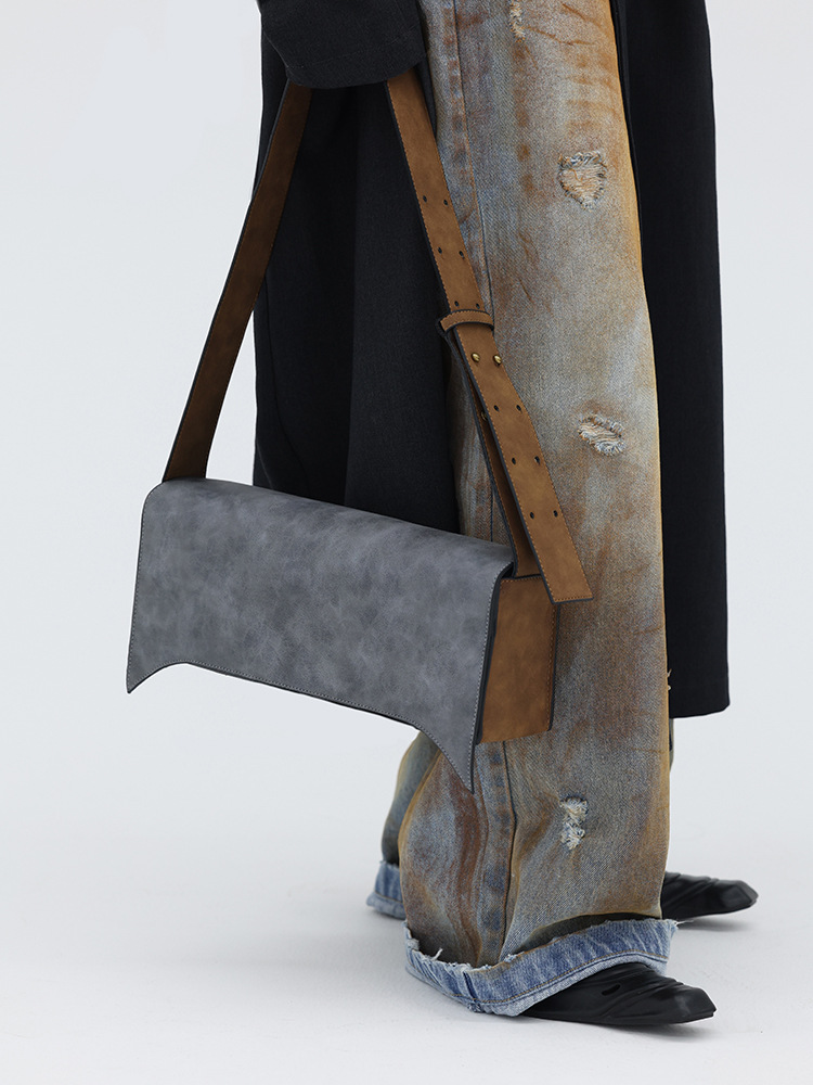 Pointed Leather Gray And Brown Brushed Crossbody Bag
